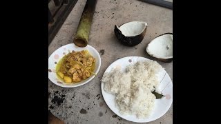 Memasak nasi dalam kelapa & masak ayam dalam kelapa. Rasakan aromanya. Masakan ala-ala camping.